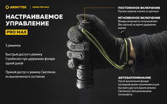 Удобное управление: отдельная боковая кнопка с мягким нажатием для переключения режимов, тактическая кнопка для включения и выключения фонаря, а также для быстрого доступа к режиму Стробоскоп.