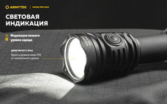 Усовершенствованная активная защита от перегрева в режиме реального времени: обеспечивает безопасное и комфортное использование. При приближении температуры к +58 °C яркость снижается, что позволяет избежать перегрева фонаря и аккумулятора, а также деградации диода. Соответствует европейским требованиям безопасности.