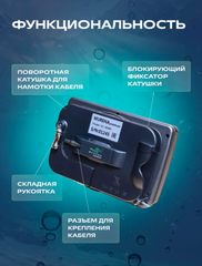 Не нужно путаться в кабеле при сматывании. Благодаря специальной конструкции при смотке кабеля он сам расправляется и укладывается аккуратно в катушке. Скручивать кабель теперь стало очень удобно и быстро.