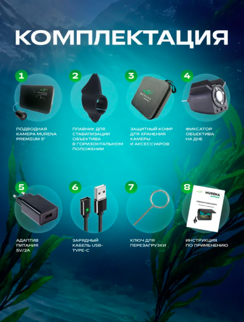 «Murena Премиум» — это не просто камера, а ваш личный гид в подводном мире. С ней вы всегда будете на шаг впереди, зная, где искать рыбу и как оптимизировать процесс ловли. Подарите себе новые впечатления от рыбалки! Закажите «MУРЕНА Премиум» прямо сейчас и откройте для себя подводный мир во всех деталях.